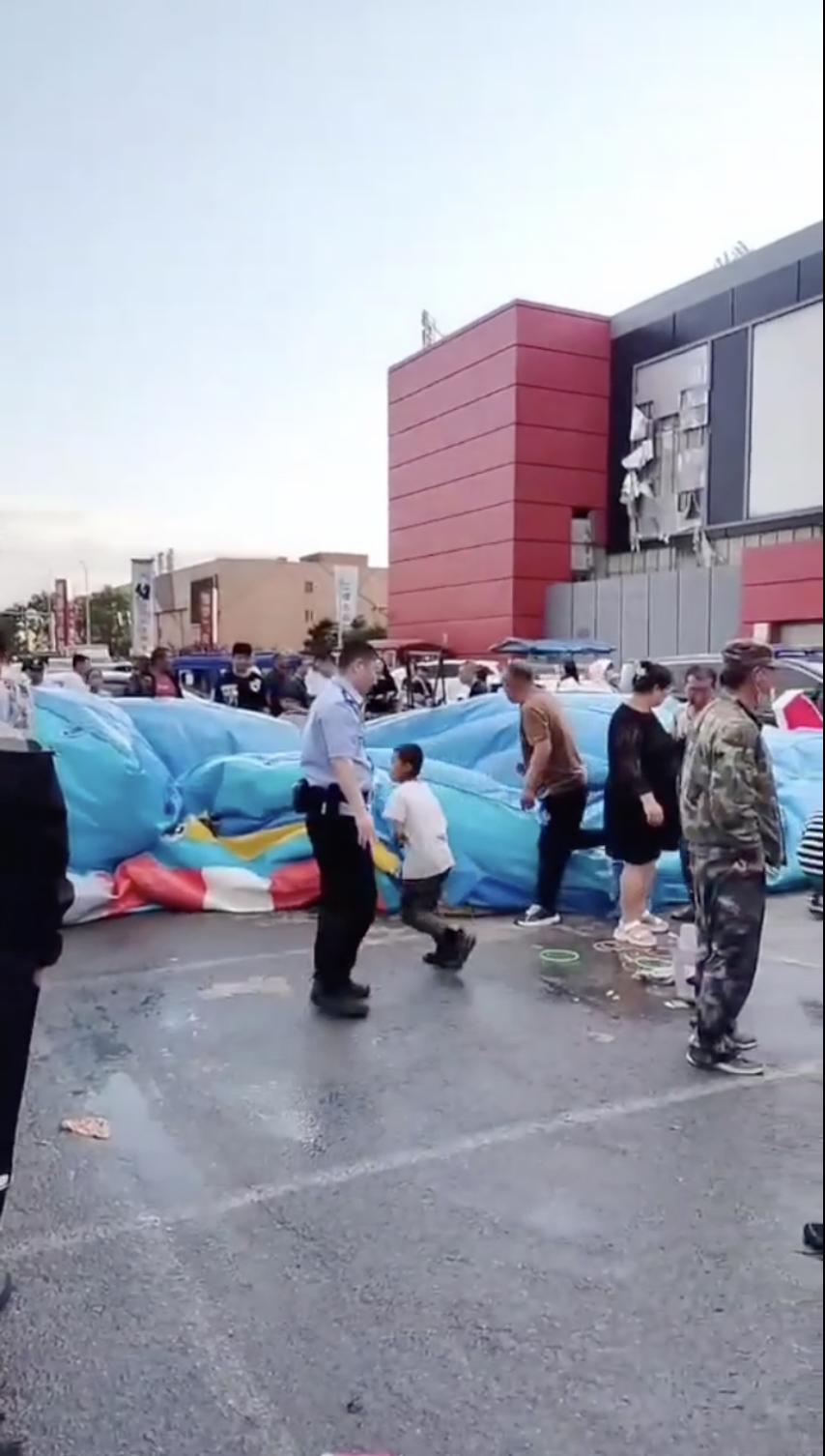 近日,有网友称,辽宁省辽阳市灯塔市佟二堡镇一处充气城堡被风吹起,发惹事故。网友发布的多则视频中,在一皮革城隔邻,有一蓝色充气城堡倒在大地,不少市民围在一旁,民警也在现场处理。
