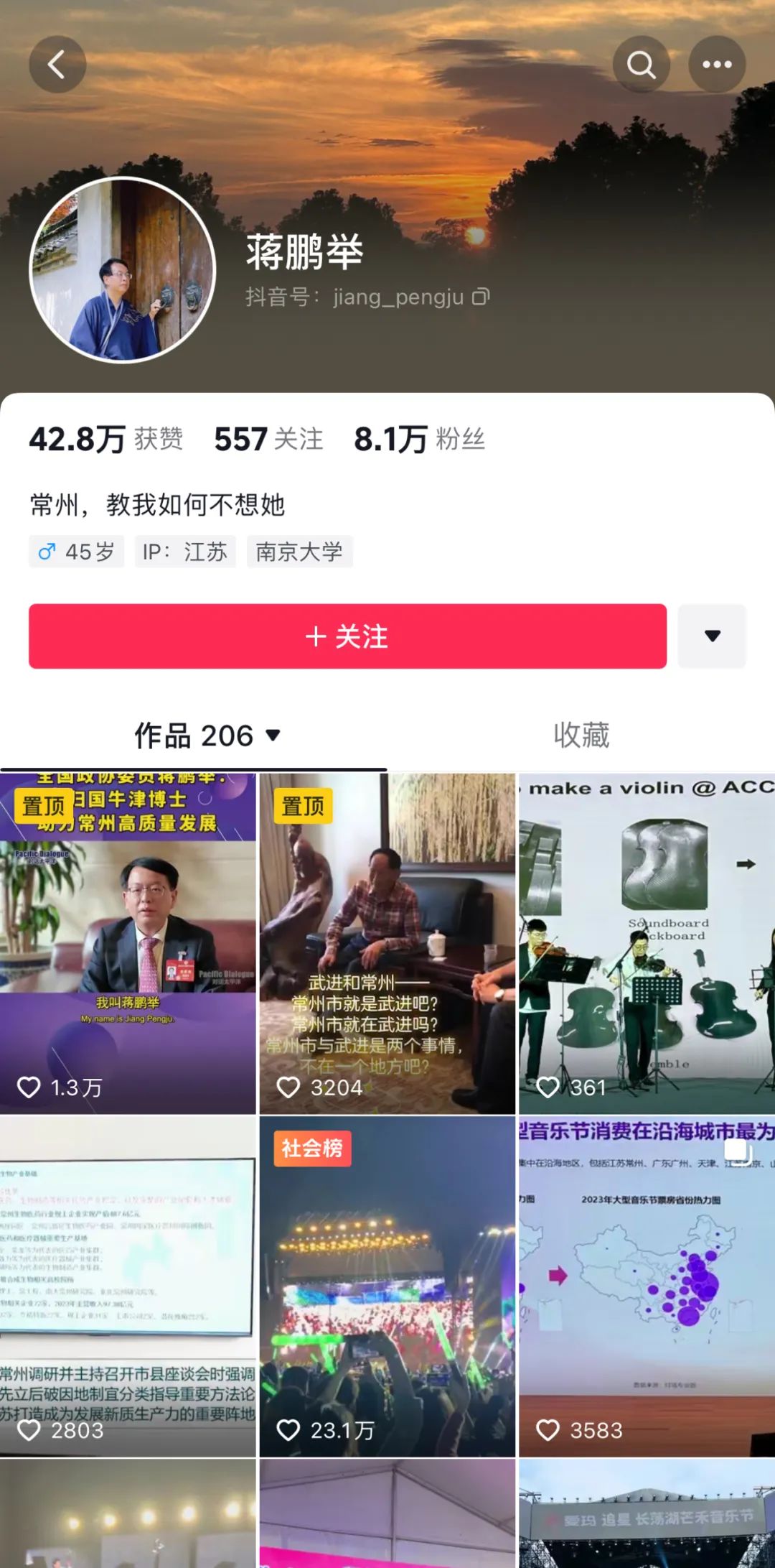 不少网友在抖音、微博等平台刷到一则演唱会现场视频,发布账号为“蒋鹏举”,网友从浅近发布本色、留言判断发布东谈主是常州市副市长蒋鹏举。
