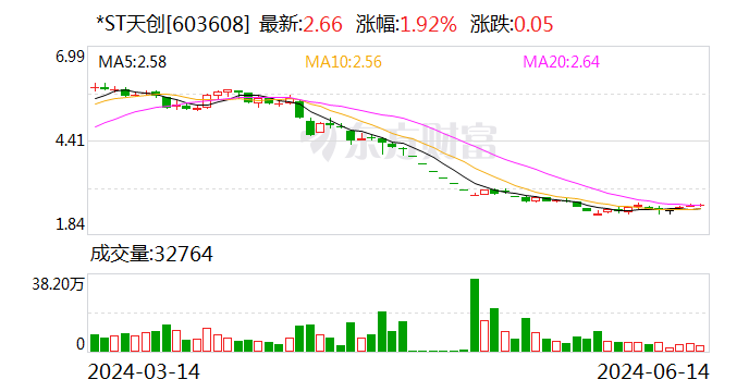 *ST天创(SH603608,收盘价:2.66元)6月14日晚间发布公告称,天创前卫股份有限公司于2024年6月6日召开了第四届董事会第二十四次会议,审议通过了《对于以王人集竞价来回形貌回购公司股份决策的议案》。现将公司2024年6月6日前十大无尽售要求鼓励流露如下:青岛禾天交易结伴企业(庸俗结伴)捏约7324万股,占比17.45%;高创有限公司捏约5712万股,占比13.61%;天创前卫股份有限公司回购专用证券账户捏约2601万股,占比6.2%;Visions Holding(HK)Limited捏约2150万股,占比5.12%;玲珑集团有限公司捏约1253万股,占比2.99%;天创前卫股份有限公司-2024年第一期职工捏股筹谋捏约1003万股,占比2.39%;李怀状捏约819万股,占比1.95%;石正久捏约419万股,占比1%;李林捏约417万股,占比0.99%;王召军捏约377万股,占比0.9%。前十大畅达鼓励所有捏股约2.21亿股,占比52.6%。